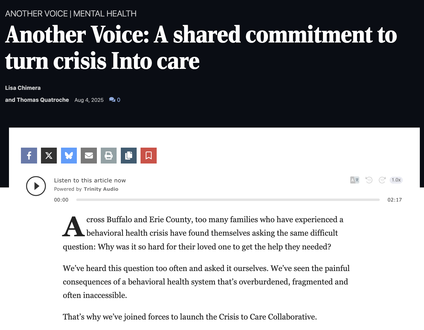 News – Crisis to Care Collaborative Author: Buffalo News Published: December 29th, 2025